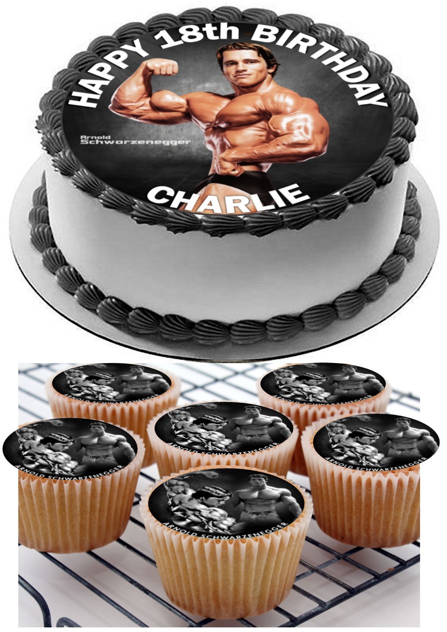 Arnold Schwarzenegger Icing Personalised Birthday Cake Topper & 8 Cupcake Toppers Arnold Schwarzenegger Icing Personalised Birthday Cake Topper & 8 Cupcake Toppers
