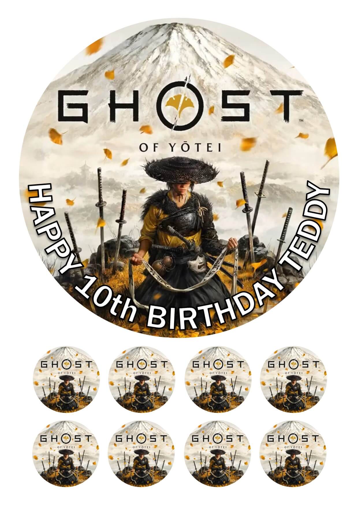 Ghost Of Yotei PS5 Game Icing Personalised Birthday Cake Topper & 8 Cupcake Toppers Ghost Of Yotei PS5 Game Icing Personalised Birthday Cake Topper & 8 Cupcake Toppers
