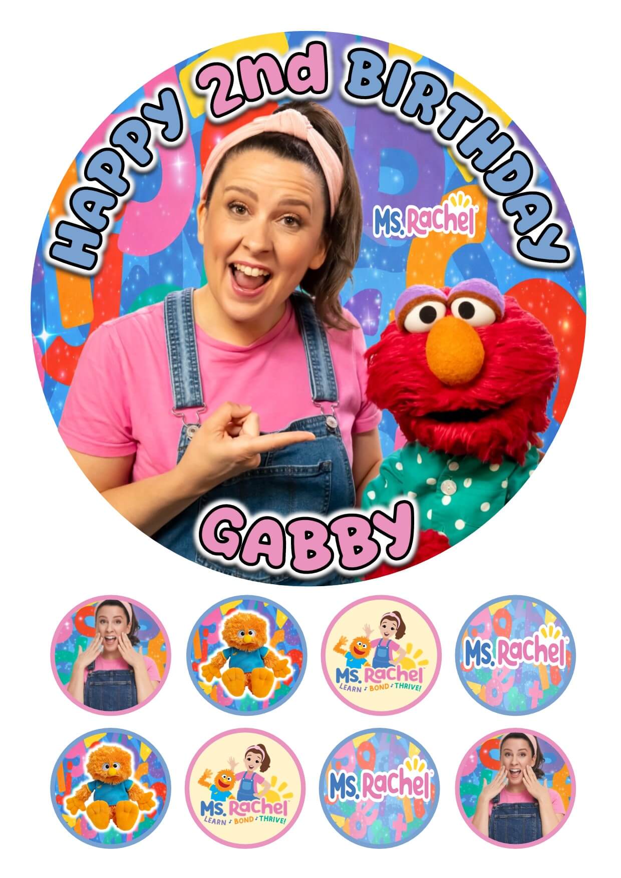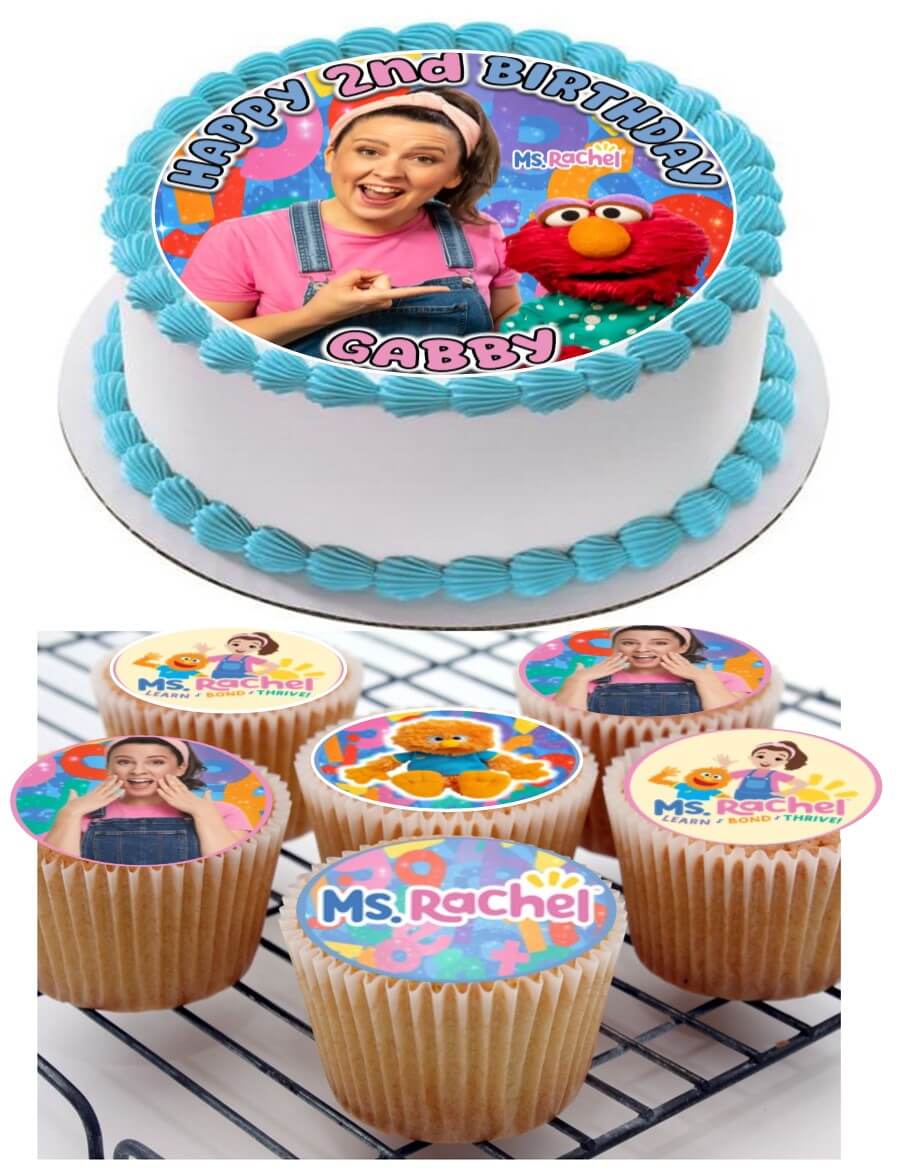 Ms. Rachel Icing Personalised Birthday Cake Topper & 8 Cupcake Toppers