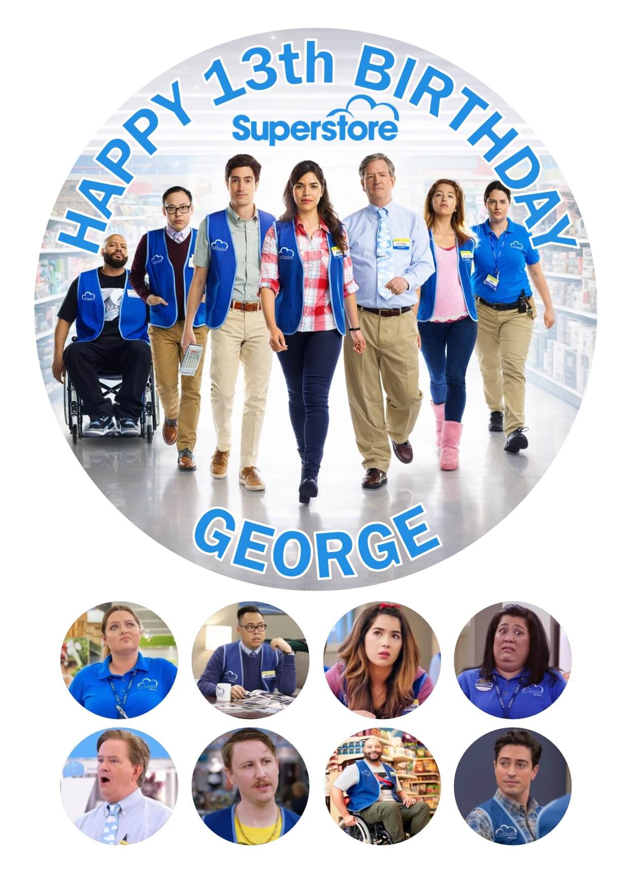 Superstore TV Show Icing Personalised Birthday Cake Topper & 8 Cupcake Toppers Superstore TV Show Icing Personalised Birthday Cake Topper & 8 Cupcake Toppers
